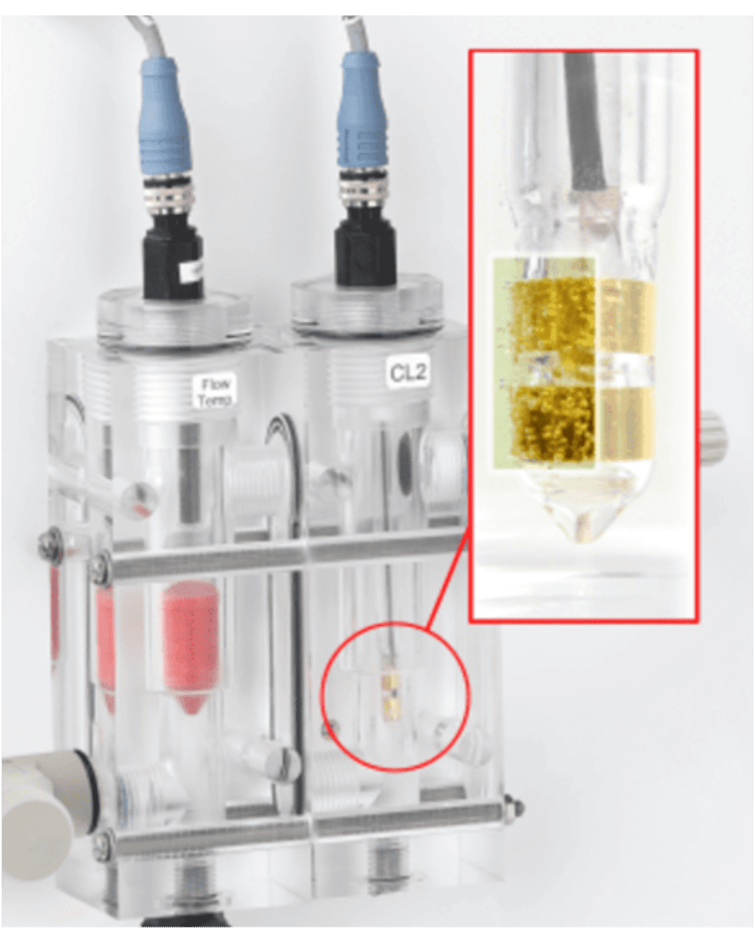 Com sensor de cloro, válvulas, células de fluxo, sensor de pH opcional;